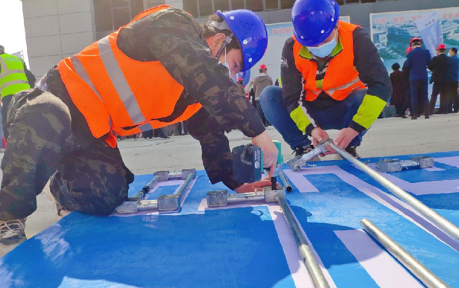 本次“安康杯”農(nóng)民工勞動(dòng)技能比賽分為墻磚砌筑和水電管道安裝兩個(gè)工種項(xiàng)目。鶴壁市各地的10個(gè)代表隊(duì)經(jīng)過前期初賽,共6個(gè)代表隊(duì)脫穎而出來到?jīng)Q賽。決賽上參賽隊(duì)員用管道編制CSCEC圖樣、用施工用磚砌筑L形墻體。賽場上熱火朝天,如火如荼,參賽隊(duì)員們斗志昂揚(yáng)、互相比拼、奮勇爭先,紛紛施展自身強(qiáng)硬本領(lǐng),也展現(xiàn)了項(xiàng)目一線工人頑強(qiáng)拼搏的精神風(fēng)貌。(畢曉)