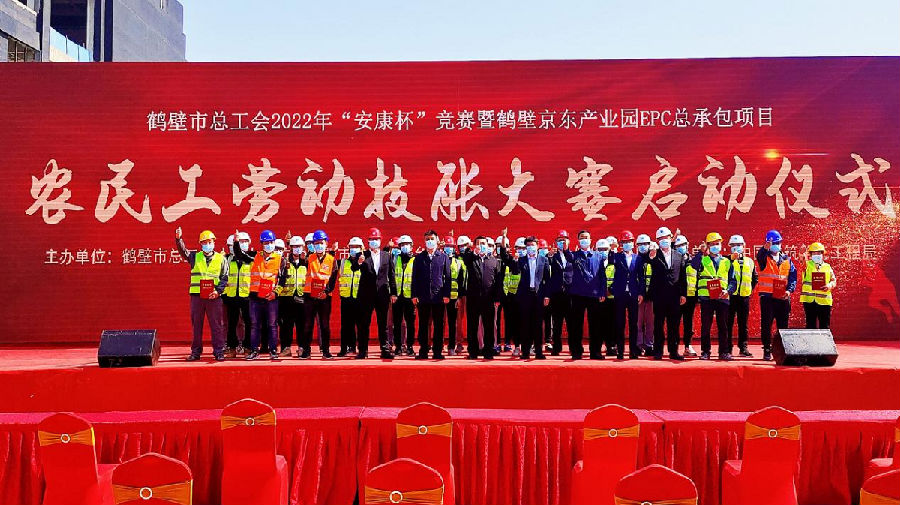 4月19日,鶴壁市總工會(huì)和公司鶴壁京東產(chǎn)業(yè)園EPC總承包項(xiàng)目聯(lián)合舉辦了2022年“安康杯”競賽啟動(dòng)儀式暨農(nóng)民工勞動(dòng)技能比賽。鶴壁市人大常委會(huì)黨組副書記、副主任、市總工會(huì)主席張艾芳,總工會(huì)黨組書記、常務(wù)副主席宋擁軍,市住建局黨組成員、副局長袁志勇,市城鄉(xiāng)一體化示范區(qū)工委委員、副書記胡萬軍,市總工會(huì)黨組成員、經(jīng)審委主任孫文治,市城投集團(tuán)總經(jīng)理王煜強(qiáng),公司華中分公司副總經(jīng)理應(yīng)錦宏等參加了啟動(dòng)儀式。