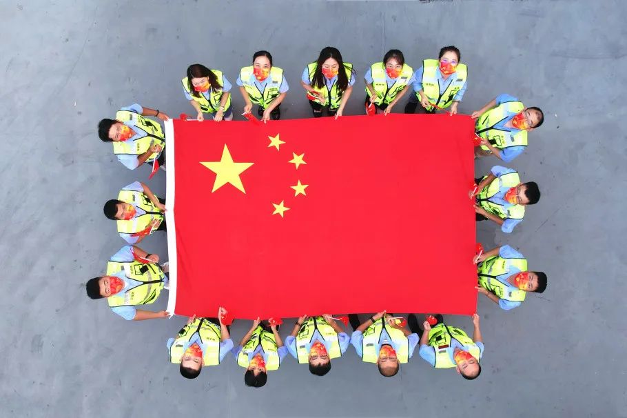 華東分公司浦江農(nóng)居點項目開展與國旗合影活動,項目黨員和青年員工緊緊環(huán)繞在國旗的周圍,唱響《我和我的祖國》,為祖國73周年華誕深情獻禮。