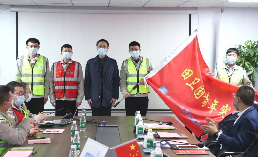 隨后,濱海新區(qū)團委書記邵兵為田衛(wèi)國青年突擊隊授旗。