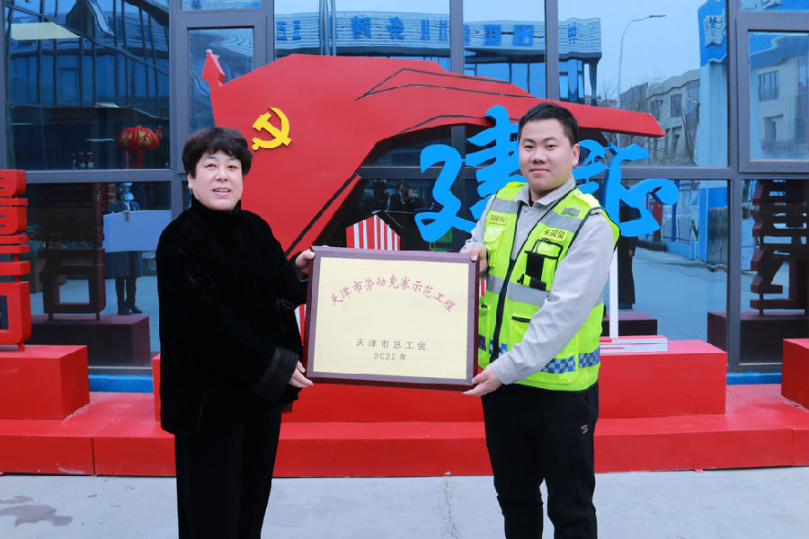 2月9日,天津市濱海新區人大常委會副主任、總工會黨組書記、主席宮麗艷,總工會黨組成員、經審委主任李靜一行到公司天津國家網絡安全中心項目,為項目榮獲“2022年天津市勞動競賽示范工程”授牌,并給予20萬元工作補助資金。公司黨委副書記、工會主席吳業欽出席授牌儀式。