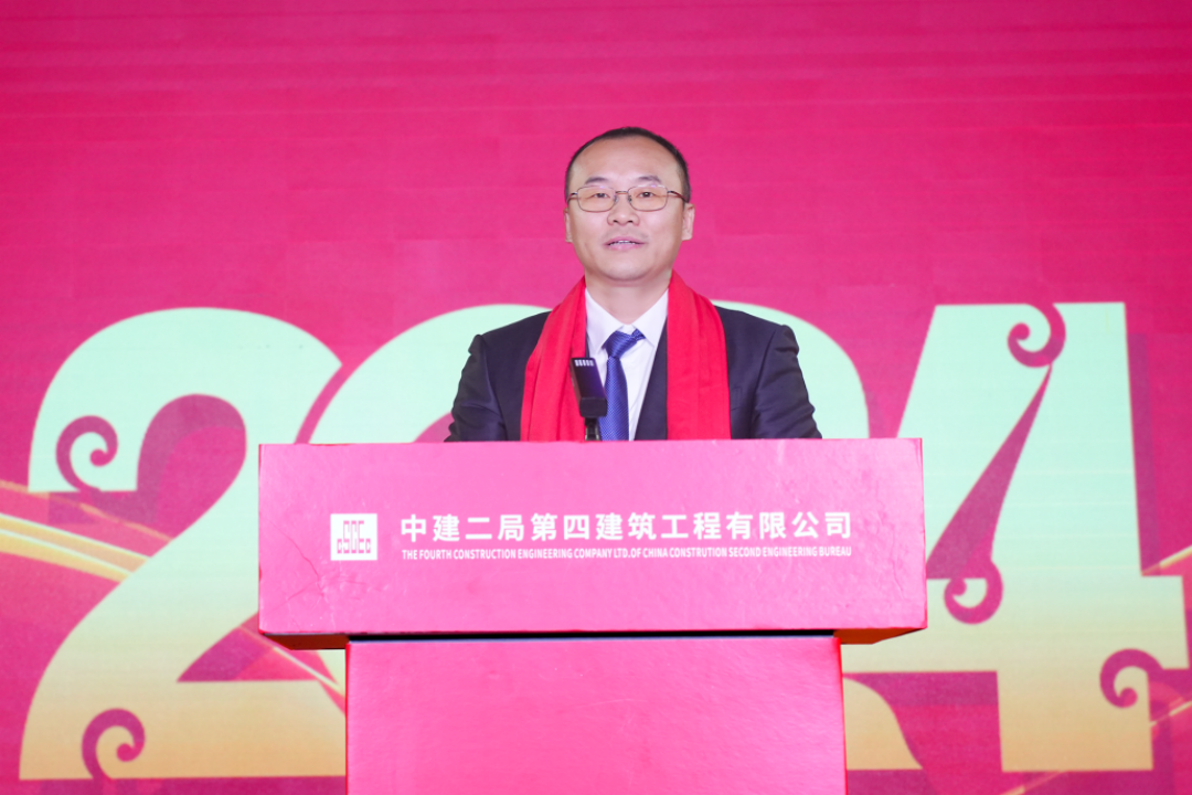 公司黨委副書記、總經(jīng)理高安培發(fā)表致辭,他向為公司發(fā)展做出突出貢獻的廣大職工及家屬致以崇高的敬意,向奮戰(zhàn)在項目一線的各位同事表示親切的問候!他表示,2023年是全體四公司人迎難而上、奮發(fā)圖強的一年。這一年全體四公司人時刻緊跟公司黨政步伐,團結(jié)一心,同努力共奮斗,圓滿完成全年目標任務(wù)。2024年全體四公司人一定會繼續(xù)發(fā)揚迎難而上的斗志,堅定發(fā)展信心,為實現(xiàn)自己的價值而努力,為公司更加美好的未來而奮斗,不斷開創(chuàng)公司高質(zhì)量發(fā)展的新局面。