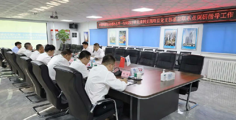 首先,孫占軍詳細了解了天津網(wǎng)絡(luò)安全中心項目的施工進展情況,并聽取了項目施工生產(chǎn)及黨支部建設(shè)情況的匯報。