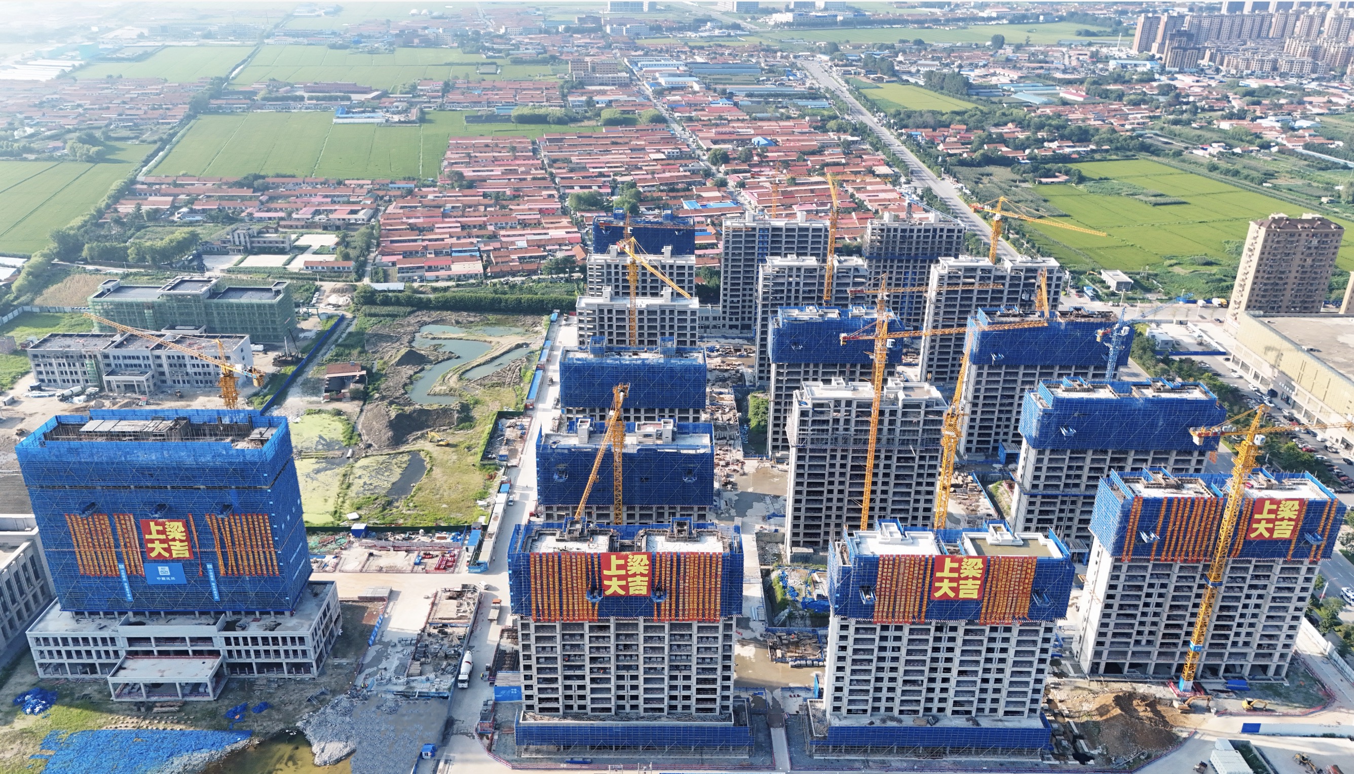 近日,東港盛世盈鑫及德鄰寫字樓項目全面封頂。